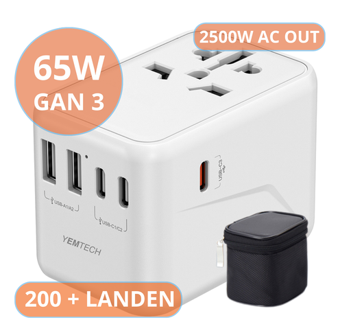 Yemtech® - Laptop lader & Wereldstekker 65W GaN3